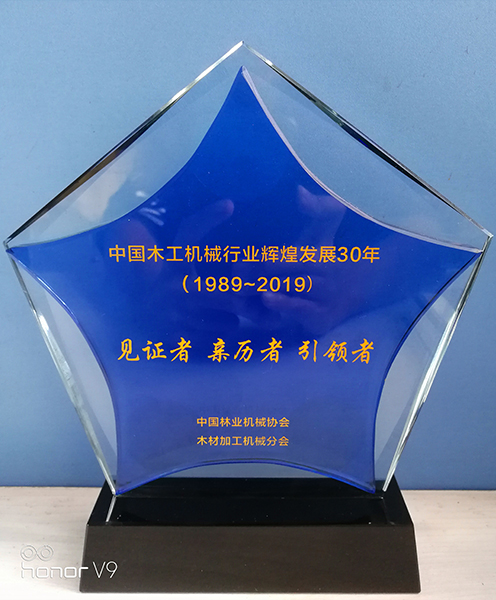 2019年11月22日-24日,“中國林業(yè)機(jī)械協(xié)會(huì)木材加工機(jī)械分會(huì)成立30周年”系列活動(dòng)在哈爾濱進(jìn)行。我公司榮獲“中國木工機(jī)械行業(yè)輝煌發(fā)展30年功勛企業(yè)”、劉維漢同志榮獲“中國木工機(jī)械行業(yè)輝煌發(fā)展30年先進(jìn)個(gè)人”。